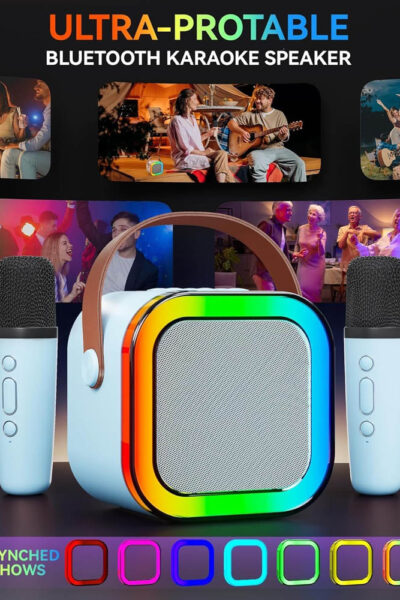 Nešiojama karaoke sistema su dviem mikrofonais + BLUETOOTH + LED
