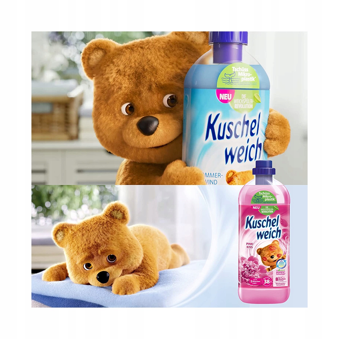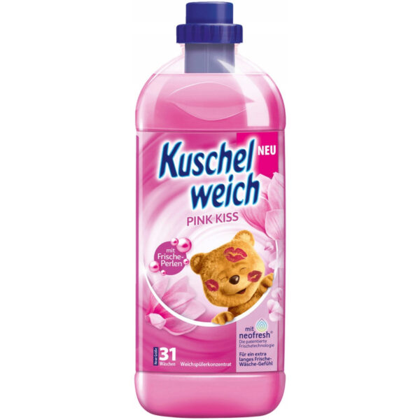 „Kuschelweich Pink kiss“ drabužių minkštiklis suteikia skalbiniams ypatingo švelnumo ir ilgalaikį gaivos pojūtį. Unikalus aromatas su gaiviu, lengvu kvapu išsilaiko iki 8 savaičių dėka NeoFresh® technologijos. Koncentruota formulė užtikrina, kad buteliuko užteks net 38 skalbimams. Be mikroplastiko, draugiškas tiek odai, tiek aplinkai.