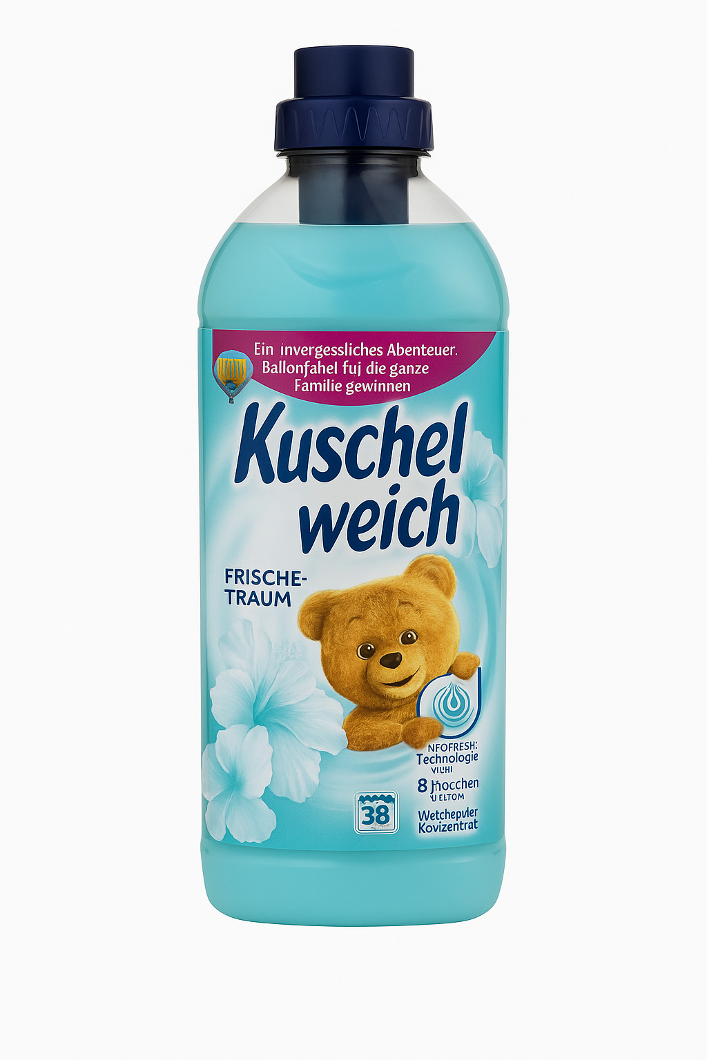 „Kuschelweich Frische Traum“ drabužių minkštiklis suteikia skalbiniams ypatingo švelnumo ir ilgalaikį gaivos pojūtį. Unikalus aromatas su gaiviu, lengvu kvapu išsilaiko iki 8 savaičių dėka NeoFresh® technologijos. Koncentruota formulė užtikrina, kad buteliuko užteks net 38 skalbimams. Be mikroplastiko, draugiškas tiek odai, tiek aplinkai.
