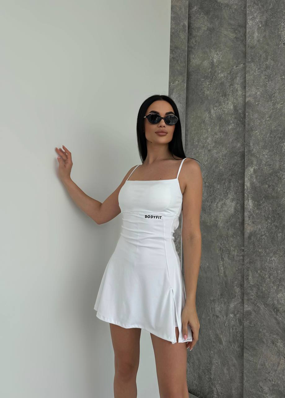 Ryški, figūrą pabrėžianti sportinė suknelė su paslėptais šortais – tobulas derinys aktyviam laisvalaikiui ar pasivaikščiojimams mieste. Suknelėje integruotos nuimamos krūtinės kaušeliai, todėl nereikia papildomo liemenėlio. Nugaroje – stilingi iškirpimai, o priekyje – kokybiškas užrašas „BODYFIT“.