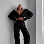 Tobulas derinys tarp patogumo ir stiliaus! Šis minkštas veliūrinis komplektas taps tavo mėgstamiausiu pasirinkimu tiek jaukiems vakarams, tiek stilingoms išvykoms.