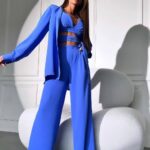 Stilingas ir universalus trijų dalių kostiumas – idealus pasirinkimas šiuolaikinei moteriai! Komplektą sudaro laisvo kritimo marškiniai, aukštu liemeniu kelnės ir korsetinė palaidinė su dekoratyviniu perrišimu. Audinys malonus kūnui, modelis nevaržo judesių, o spalvų paletė leidžia rinktis pagal nuotaiką. Šis derinys tinka tiek kasdieniam miesto stiliui, tiek vakariniam išėjimui.