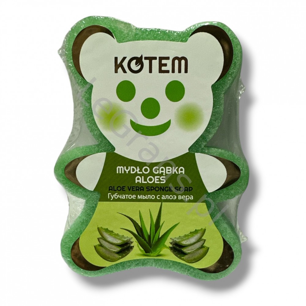 Švelnus Sponge Soap muilas–kempinėlė meškiuko formos, papildytas alavijo ekstraktu.LABAI RAMINA SUDIRGUSIĄ ODĄ.