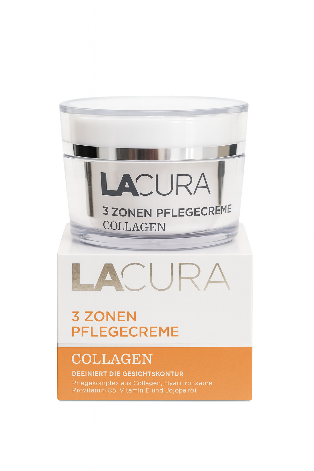 „Lacura“ 3 zonų priežiūros kremas skirtas veidui, kaklui ir dekolte sričiai. Formulė praturtinta kolagenu, hialurono rūgštimi, provitaminu B5, vitaminu E ir jojobos aliejumi, kurie intensyviai drėkina, maitina odą ir padeda kovoti su senėjimo požymiais. Kremas suteikia odai elastingumo, švytėjimo ir šilko švelnumo, užtikrina priešraukšlinį poveikį.