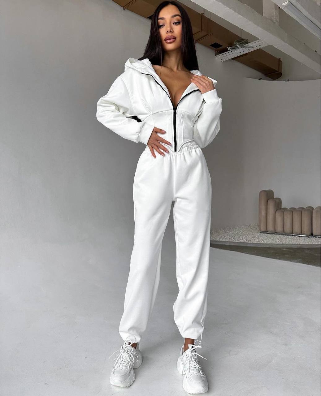 Stilingas laisvalaikio kostiumėlis iš zomšinės medžiagos.Puikiai pabrėžia liemenį.