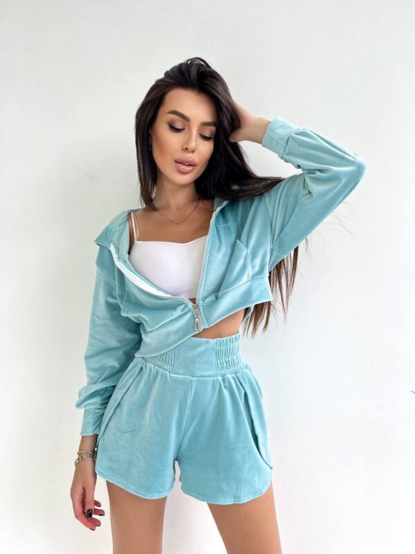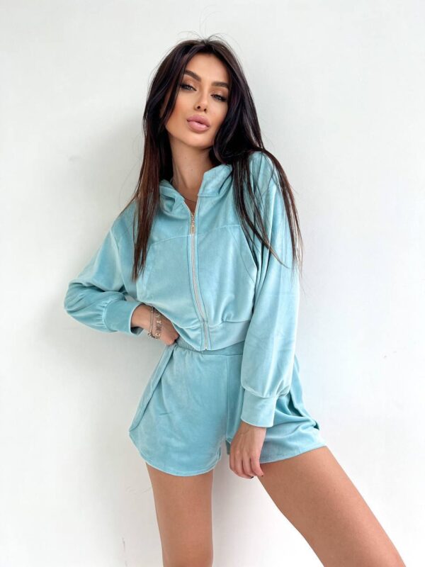 „Pliušinis saldainiukas“ – veliūrinis kostiumėlis su šortais MĖTINIS