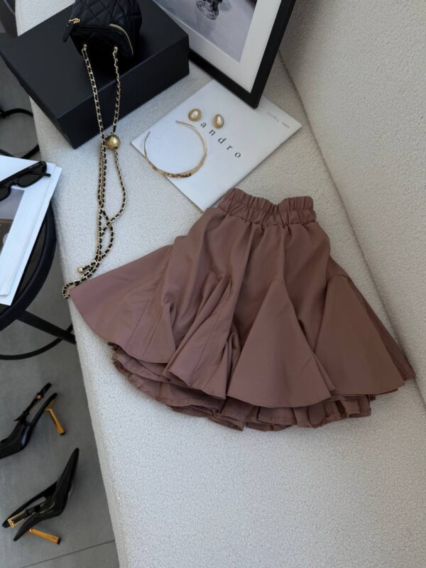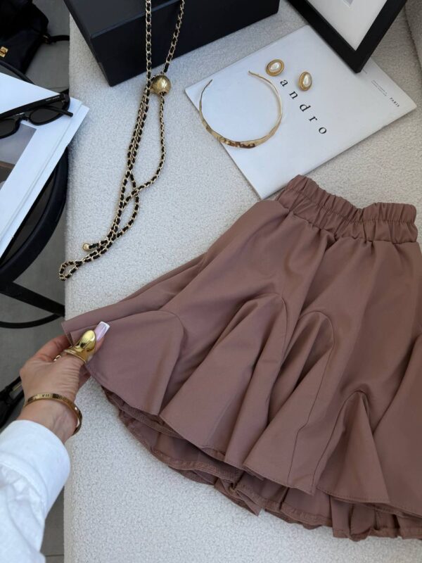 Šis sijonas su šortukais– tobulas pasirinkimas vasarai! Minkštas, lengvai krentantis audinys ir švelni vientisa spalva kuria moterišką, gaivų įvaizdį. Dailūs raukiniai prideda žaismingumo, o elastingas liemuo suteikia maksimalų komfortą. Puikiai tinka tiek prie sportinio, tiek prie elegantiškesnio viršaus.