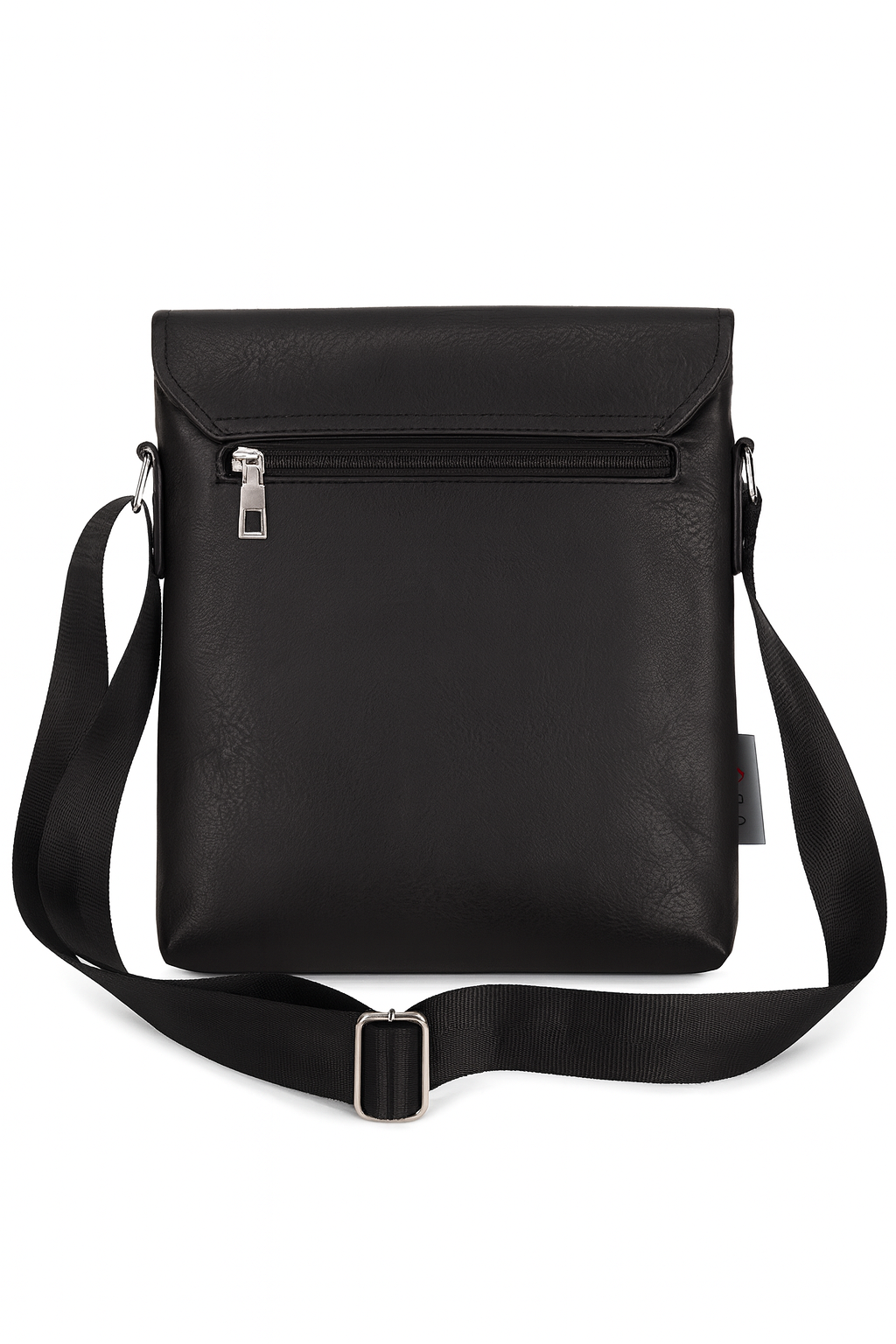 Stilinga ir praktiška juoda per petį nešiojama rankinė kasdienai. Pagaminta iš lengvai prižiūrimos eko odos su subtilia faktūra. Priekyje – atvartas, po juo pagrindinis skyrius, patogus užtrauktuku užsegamas kišenėlis smulkmenoms. Reguliuojamas diržas leidžia rankinę nešioti skirtingais ilgiais tiek ant peties, tiek „crossbody“. Puikiai tinka telefonui, piniginei, dokumentams, raktams ir kitiems būtiniems daiktams. Universalus modelis – dera tiek prie laisvalaikio, tiek prie miesto stiliaus.